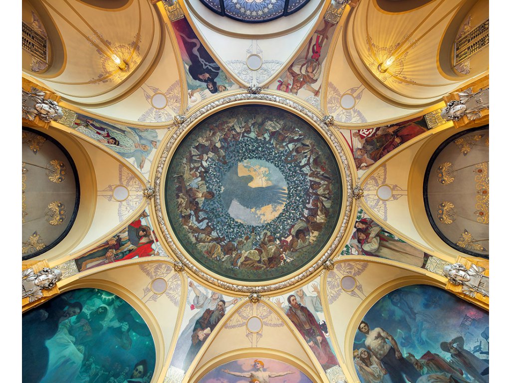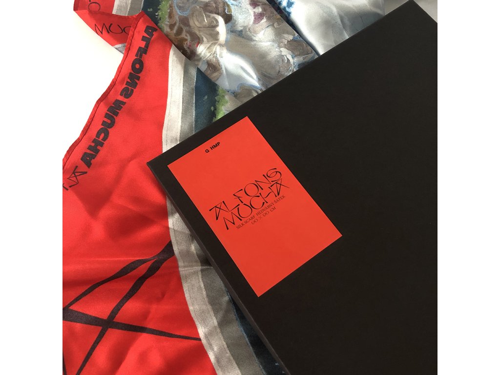 Ná šátku je motiv Slovanské svornosti od Alfonse Muchy z let 1910–1911, který byl navržen na výzdobu primátorského salónku Obecního domu v Praze.